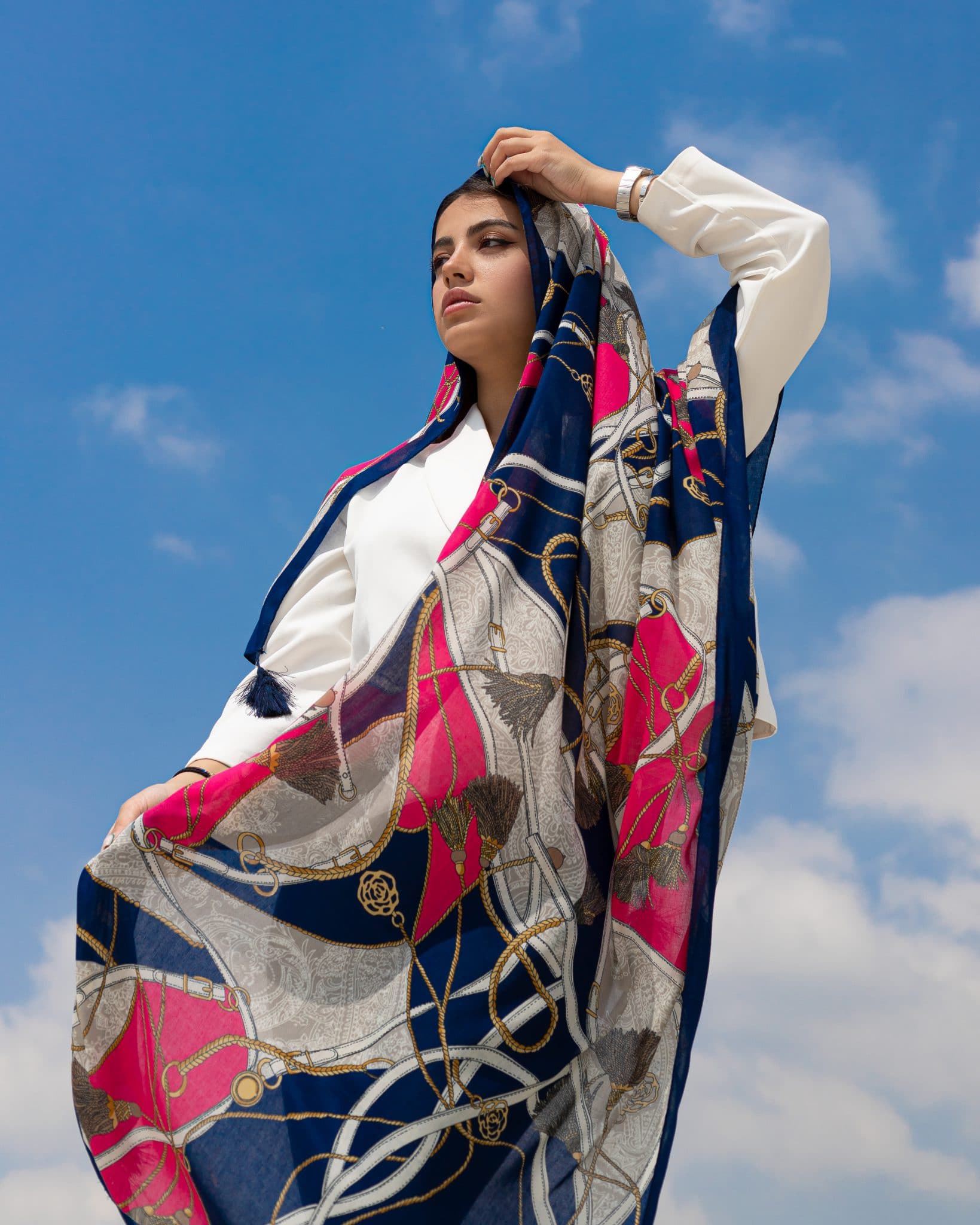 شال نخی بهاره منگوله دار